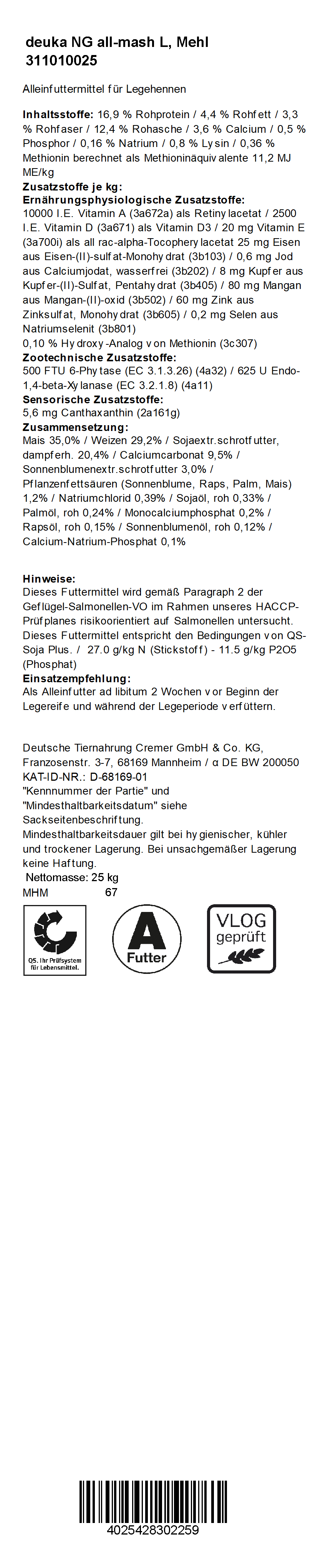 deuka NG all-mash L, 25 kg