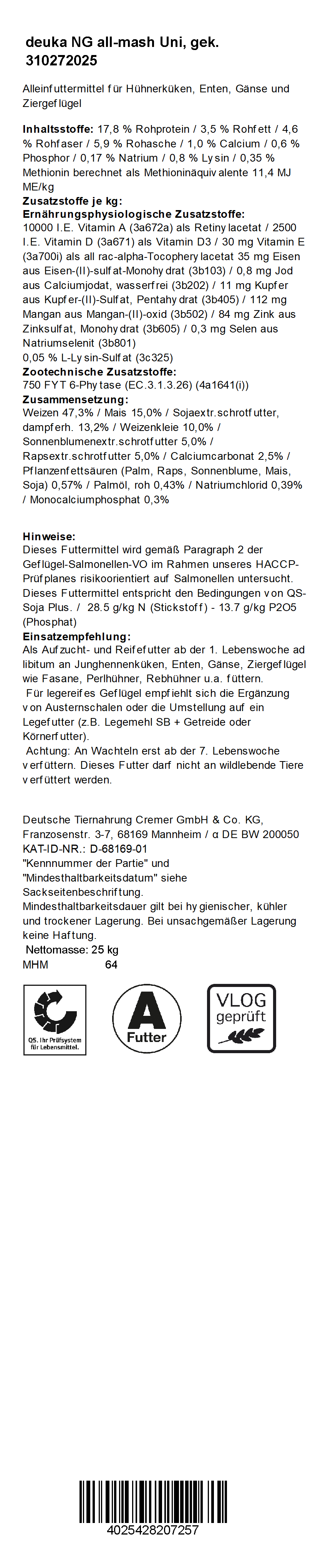 Hinweis für Landwirte*innen: Alle deuka Futter mit der Zusatzbezeichnung "NG" sind VLOG-zertifiziert.