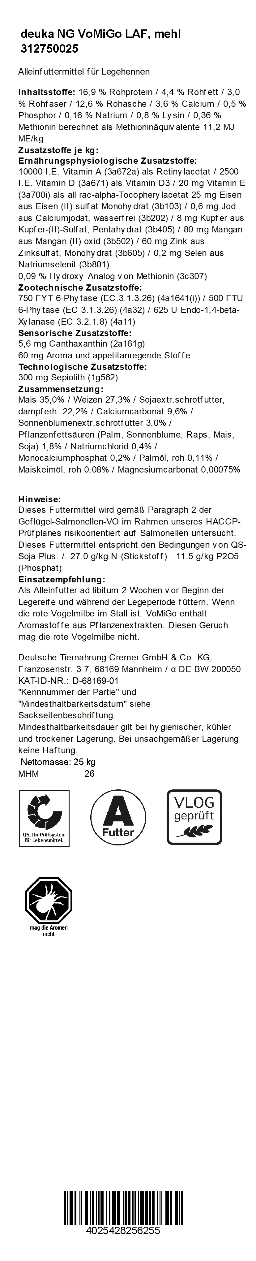 • frei von gentechnisch veränderten Zutaten - VLOG-zertifiziert