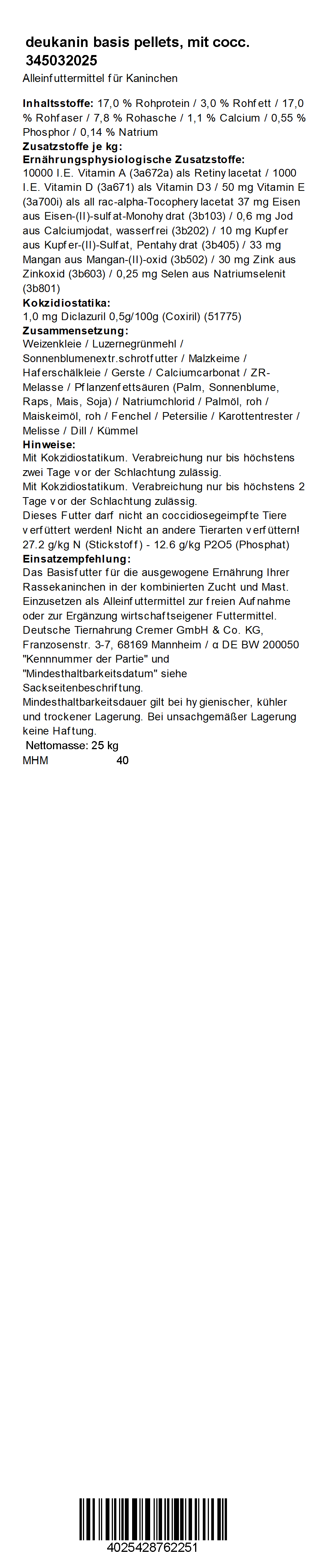 Kaninchenzüchter*innen wünschen sich schöne Tiere mit optimal ausgebildeten Rassemerkmalen. Doch auch die Ernährung zur Schauvorbereitung spielt eine Rolle für den Erfolg. Hier unterstützt deukanin® basis mit Cocc. mit seiner ausgewogenen Zusammensetzung wichtiger Nährstoffe.