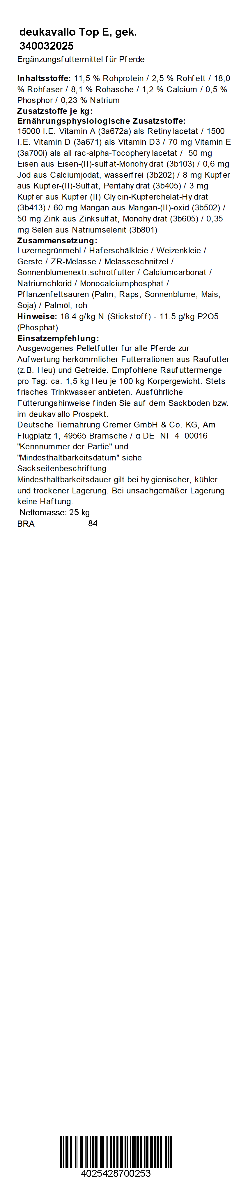 deukavallo Top E ist ein haferfreies Basiskrippenfutter für alle Rassen und Altersklassen – vom Fohlen bis zum Zuchthengst, vom Deutschen Reitpony bis zum Warmblüter. Es kann als alleiniges Krippenfutter in Ergänzung zu Heu oder Heulage universell eingesetzt werden. So unterstützt es die vollwertige Fütterung leicht bis durchschnittlich beanspruchter Pferde.