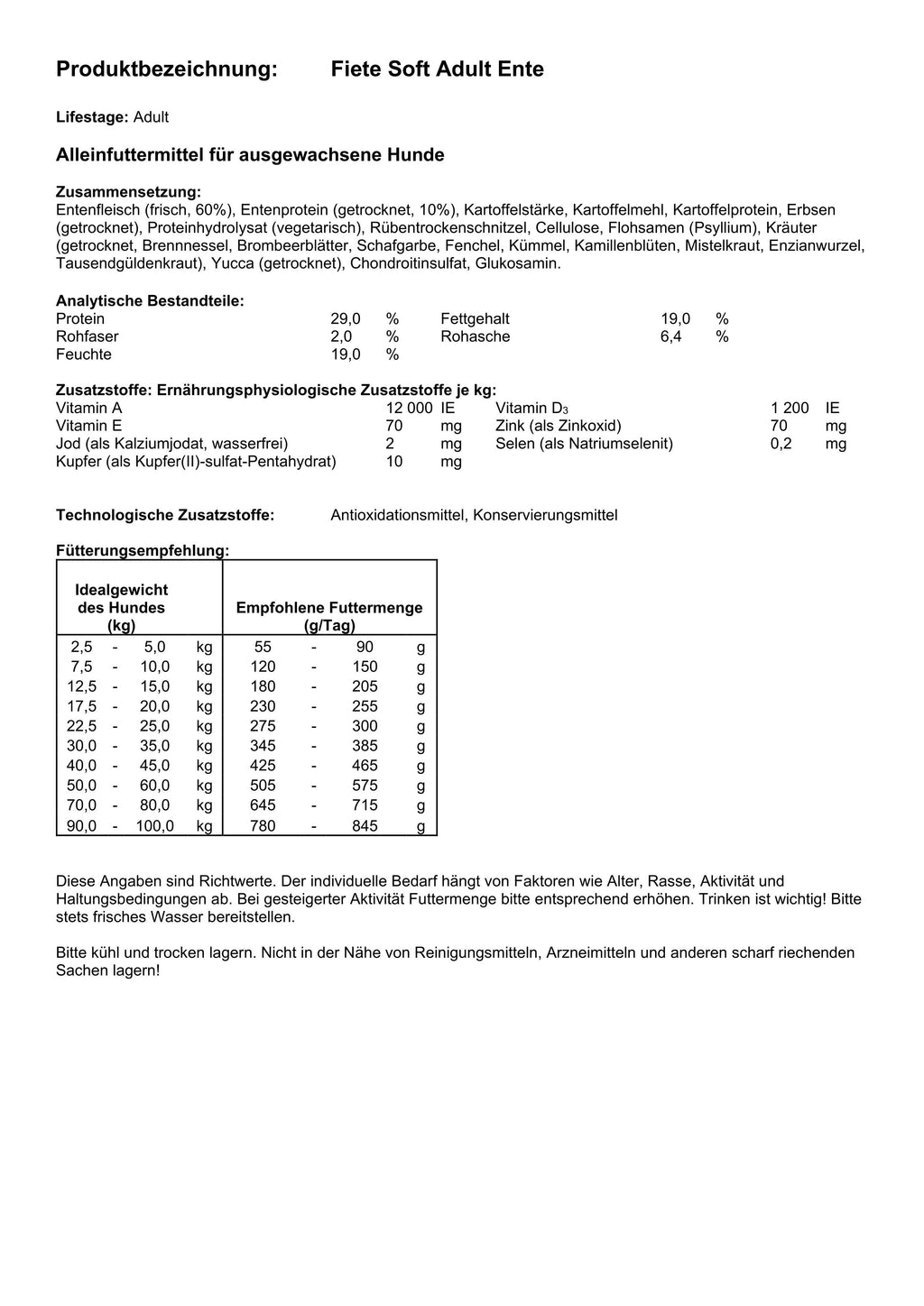 Zutatenliste & Fütterungsempfehlung